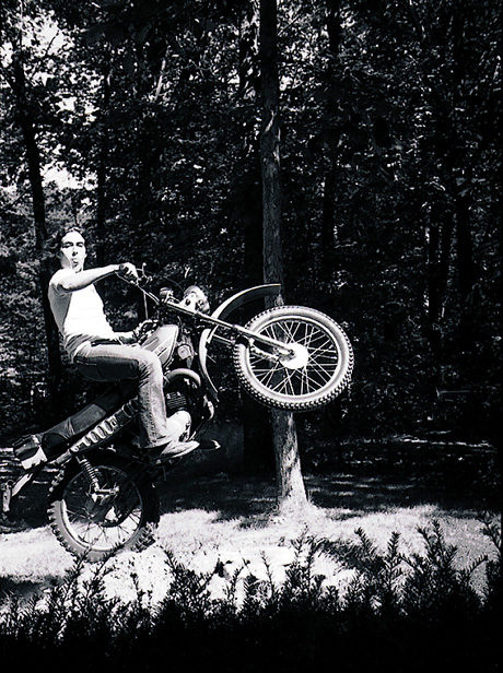 Tom showing off on his Suzuki 185 dirtbike, circa